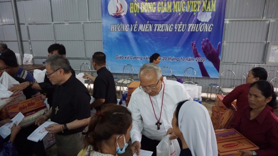 Các vị Giám mục đã trao đến các nạn nhân lũ lụt những món quà, trích từ quỹ dự phòng thiên tai của Ủy ban Bác ái Xã hội – Caritas Việt Nam…