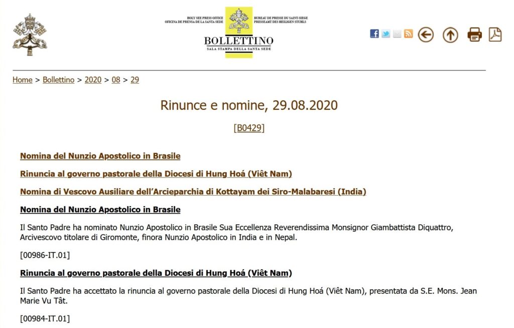 Lúc 12g ngày 29.8.2020, Phòng Báo chí Tòa Thánh công bố….