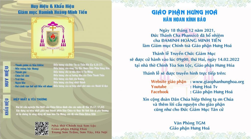Chương trình Thánh Lễ Truyền Chức Giám Mục Đaminh Hoàng Minh Tiến…