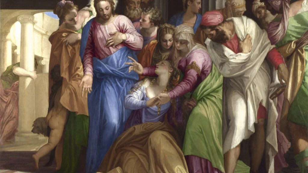 Trông thấy bà, Đức Giê-su gọi lại và bảo: “Này bà, bà đã được giải thoát khỏi tật nguyền!” Rồi Người đặt tay trên bà, tức khắc bà đứng thẳng lên được và tôn vinh Thiên Chúa….