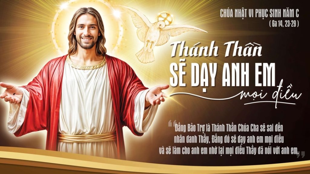 Đức Giê-su nói với các môn đệ rằng: “Khi Đấng Bảo Trợ đến, Đấng mà Thầy sẽ sai đến với anh em từ nơi Chúa Cha, Người là Thần Khí sự thật phát xuất từ Chúa Cha, Người sẽ làm chứng về Thầy. …