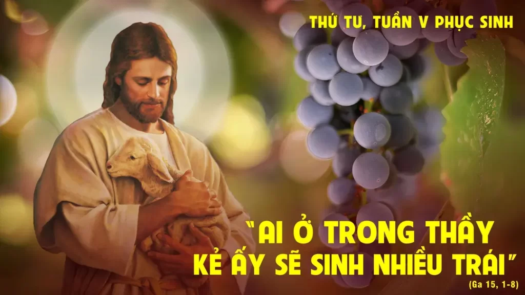 Thầy là cây nho, anh em là cành. Ai ở lại trong Thầy và Thầy ở lại trong người ấy, thì người ấy sinh nhiều hoa trái, vì không có Thầy, anh em chẳng làm gì được….