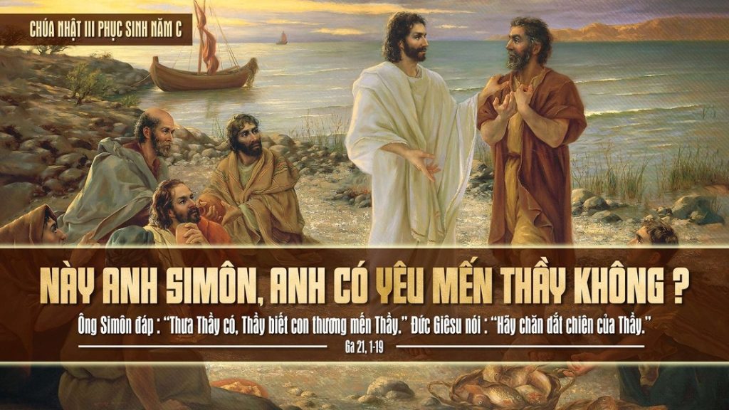 Ông Phê-rô buồn vì Người hỏi tới ba lần: “Anh có thương mến Thầy không?”. Ông đáp: “Thưa Thầy, Thầy biết rõ mọi sự; Thầy biết con thương mến Thầy”. Đức Giê-su bảo: “Hãy chăm sóc chiên của Thầy….