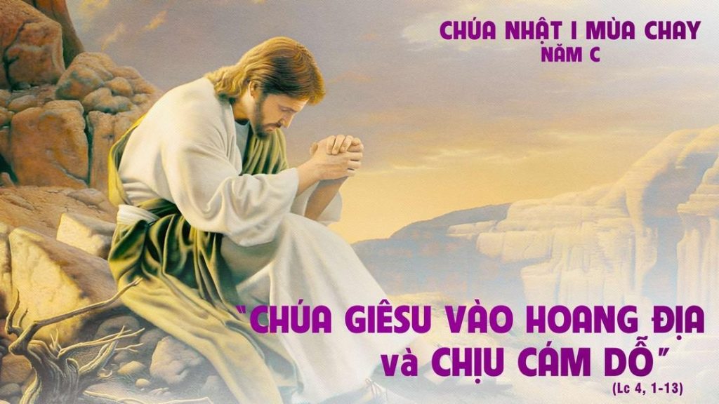 Sau khi chịu phép rửa, Đức Giê-su được đầy Thánh Thần, từ sông Gio-đan trở về. Suốt bốn mươi ngày, Người được Thánh Thần dẫn đi trong hoang địa và chịu quỷ cám dỗ…..