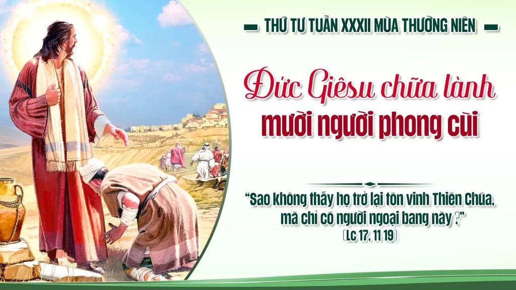 Đức Giê-su mới nói: “Không phải cả mười người đều được sạch sao? Thế thì chín người kia đâu? Sao không thấy họ trở lại tôn vinh Thiên Chúa, mà chỉ có người ngoại bang này?”…..