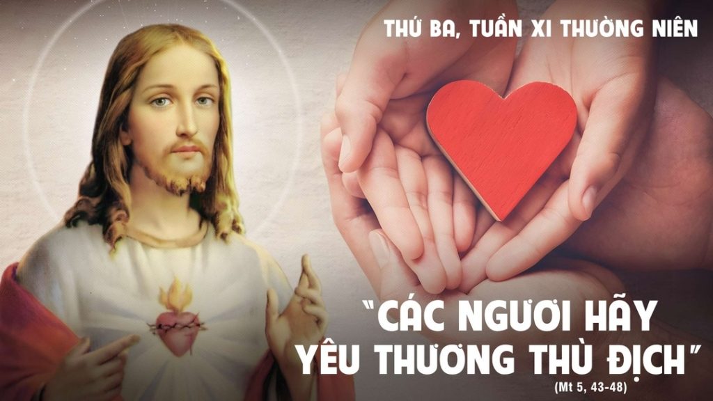 Đức Giêsu nói với các môn đệ rằng: “Anh em đã nghe Luật dạy rằng: Hãy yêu đồng loại và hãy ghét kẻ thù. Còn Thầy, Thầy bảo anh em: hãy yêu kẻ thù và cầu nguyện cho những kẻ ngược đãi anh em….