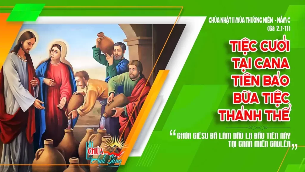 Đức Giê-su bảo họ: “Các anh đổ đầy nước vào chum đi!”. Và họ đổ đầy tới miệng. 8 Rồi Người nói với họ: “Bây giờ các anh múc và đem cho ông quản tiệc”. Họ liền đem cho ông. Khi người quản tiệc nếm thử …