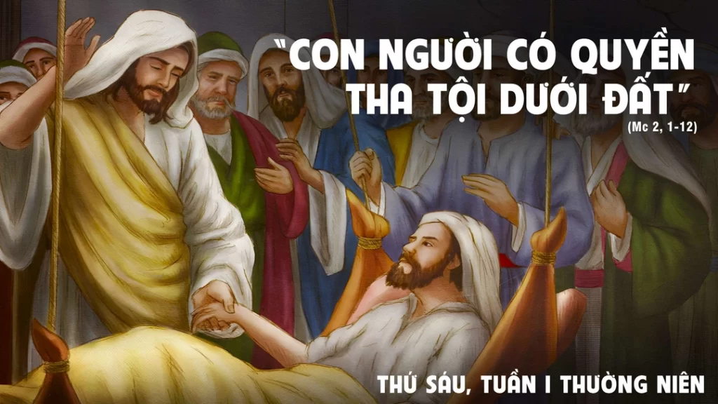 Vậy, để các ông biết: ở dưới đất này, Con Người có quyền tha tội, -Đức Giê-su bảo người bại liệt-, Ta truyền cho con: Đứng dậy, vác chõng mà đi về nhà!”.