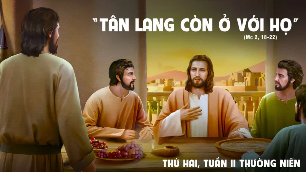 “Tại sao các môn đệ ông Gio-an và các môn đệ người Pha-ri-sêu ăn chay, mà môn đệ ông lại không ăn chay?”. Đức Giê-su trả lời: “Chẳng lẽ khách dự tiệc cưới lại có thể ăn chay, khi chàng rể còn ở với họ?….