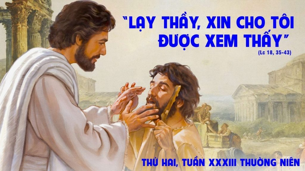 “Lạy Ngài, xin cho tôi nhìn thấy được”. 42 Đức Giêsu nói: “Anh nhìn thấy đi! Lòng tin của anh đã cứu chữa anh”. Lập tức, anh ta nhìn thấy được và theo Người, vừa đi vừa tôn vinh Thiên Chúa. ….