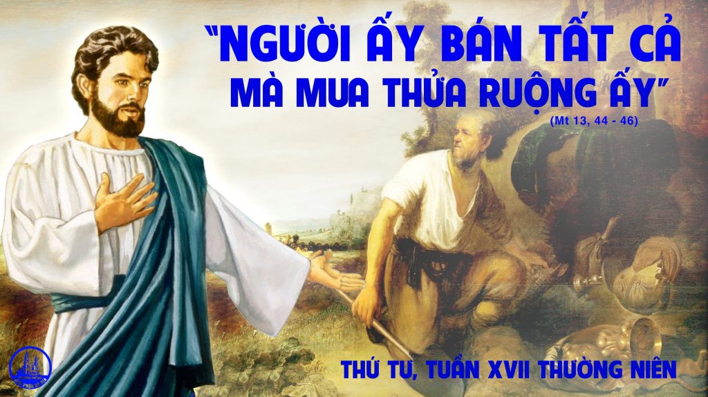 “Nước Trời giống như chuyện kho báu chôn giấu trong ruộng. Có người kia gặp được thì liền chôn giấu lại, rồi vui mừng đi bán tất cả những gì mình có mà mua thửa ruộng ấy…