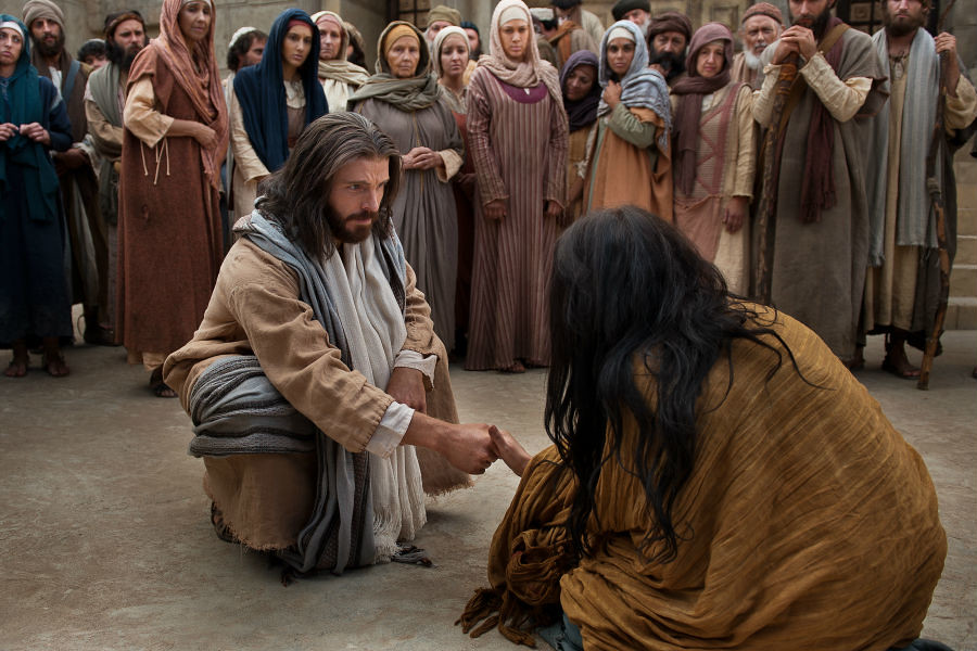“Ai trong các ông sạch tội, thì cứ việc lấy đá mà ném trước đi”. Rồi Người lại cúi xuống viết trên đất…