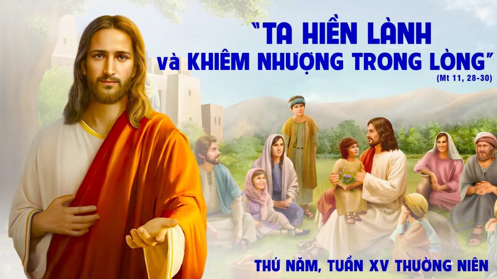 Anh em hãy mang lấy ách của tôi, và hãy học với tôi, vì tôi có lòng hiền hậu và khiêm nhường. Tâm hồn anh em sẽ được nghỉ ngơi bồi dưỡng. Vì ách tôi êm ái, và gánh tôi nhẹ nhàng”….