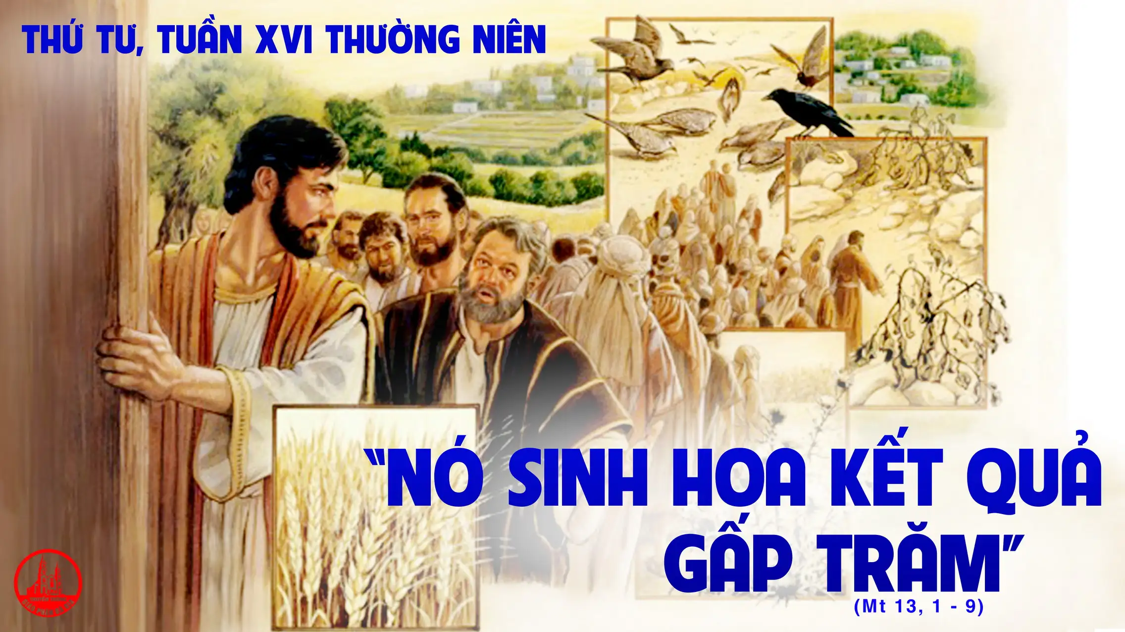 “Này đây, có người gieo giống đi gieo lúa. Trong khi gieo, có hạt rơi xuống vệ đường, chim trời bay đến ăn mất. Có hạt rơi xuống trên đá sỏi, chỗ có ít đất, nó liền mọc lên, vì không có nhiều đất. Khi mặt trời mọc lên, bị nắng gắt, và vì không đâm rễ sâu, nên nó khô héo. Có hạt rơi vào bụi gai, gai mọc um tùm, nên nó chết nghẹt. Có hạt rơi xuống đất tốt và sinh hoa kết quả, có hạt được một trăm, có hạt được sáu mươi, hạt ba mươi. Ai có tai để nghe, thì hãy nghe”.
